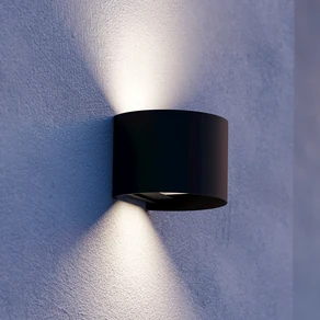 LED-utomhusvägglampa Rigosa, svart, Ø 10 cm, metall