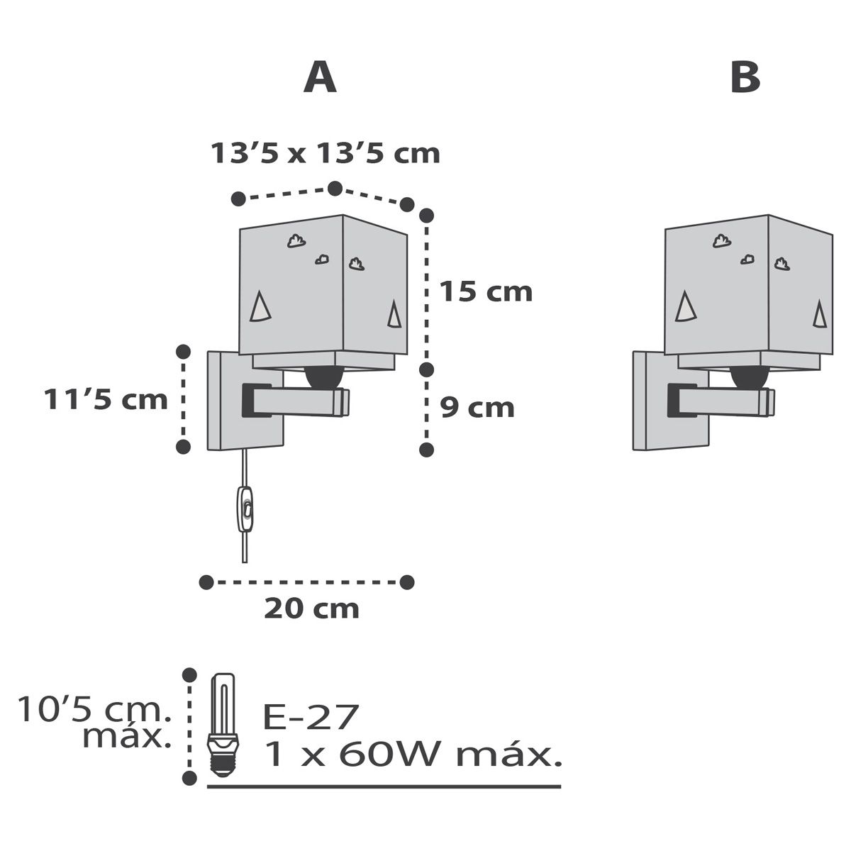 - Ljuskälla: 1 x 60 W