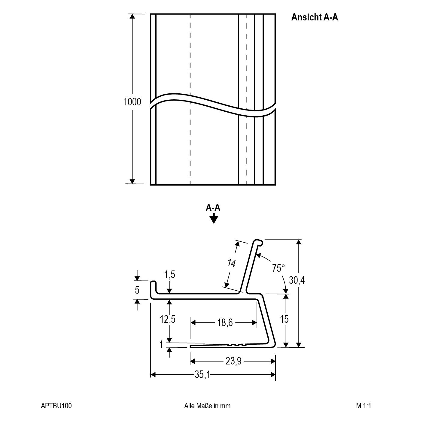 EVN APTBU profil för vägg 100 cm aluminium