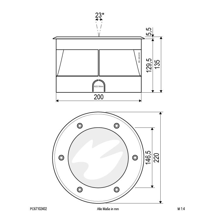 Kroppen på den runda LED-golvinbyggnadslampan Erizo är tillverkad av massivt aluminium, täckringen är av V2A-stål och glaset är transparent. Erizo kan användas överallt utomhus, eftersom den har kapslingsklass IP67 och därmed är väl skyddad mot alla väderpåverkan. Erizo levereras inklusive monteringshylsa i plast. Inbyggnadslampan är överkörbar med max 20 km/h och belastningsbar upp till max 1 500 kg. Anslutningen sker direkt på 230 V. Inklusive 0,5 m anslutningskabel med fria ledningsändar.
