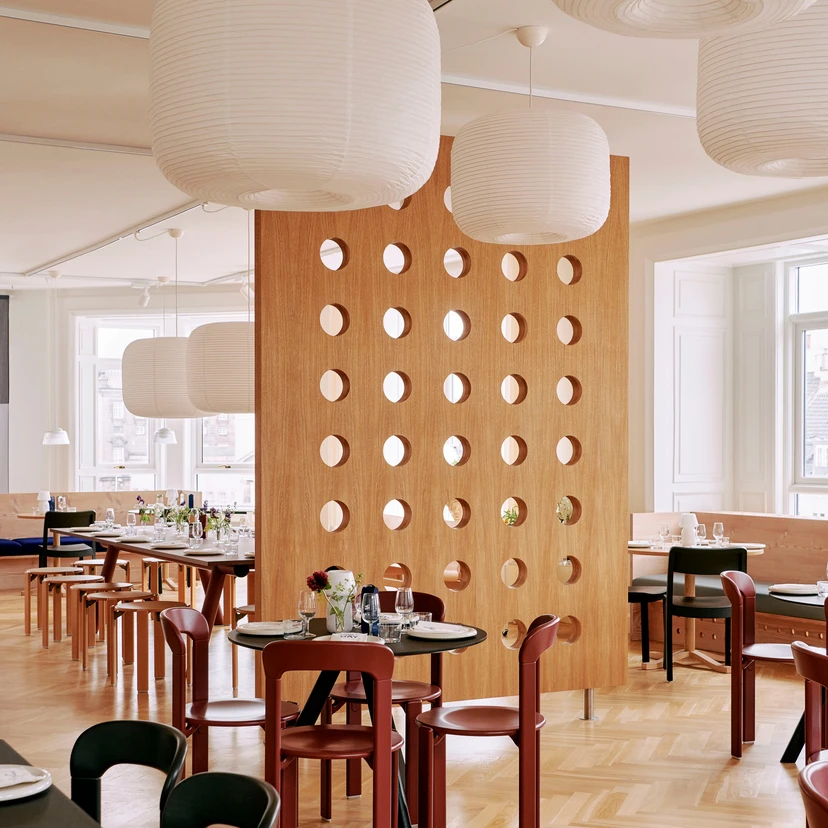 Tack vare sin imponerande storlek passar Donut-skärmen särskilt bra över stora matbord, i öppna vardagsrum eller rum med högt i tak. Paper Shade-serien från HAY omfattar ytterligare former och storlekar, så att individuella belysningskoncept enkelt kan förverkligas.