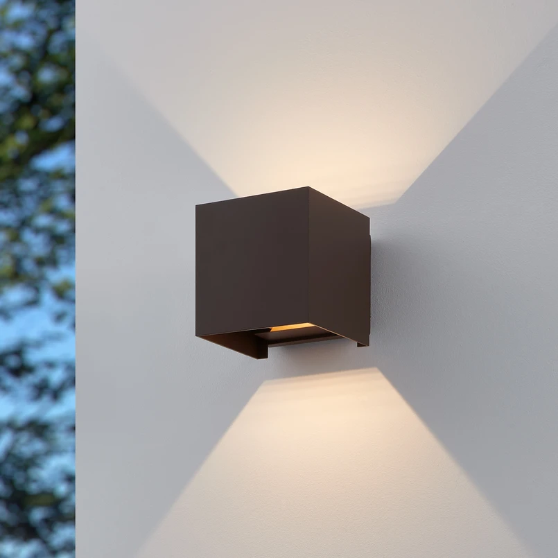 LED-utomhusvägglampa Calpino 3 kombinerar modern design med funktionell belysning. Det rostfärgade höljet i aluminium ger lampan en tidlös estetik som smälter in harmoniskt i alla miljöer. Med sin kapslingsklass IP54 är den optimal för användning utomhus och erbjuder pålitligt skydd mot damm och stänkvatten.