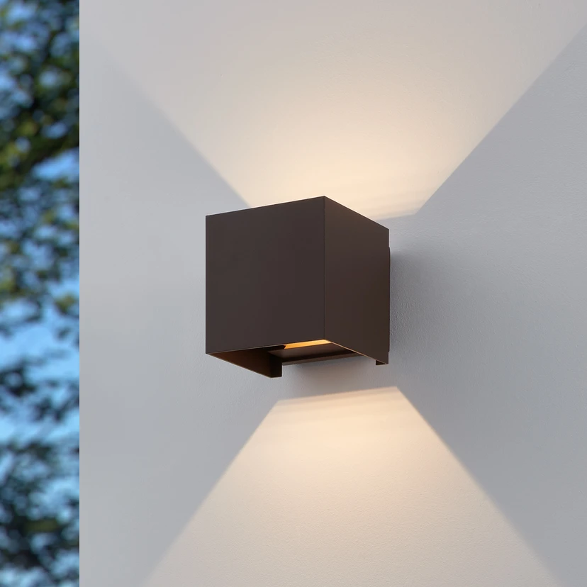 LED-utomhusvägglampa Calpino 3 rostfärgad, bredd 10 cm, 2 lampor.