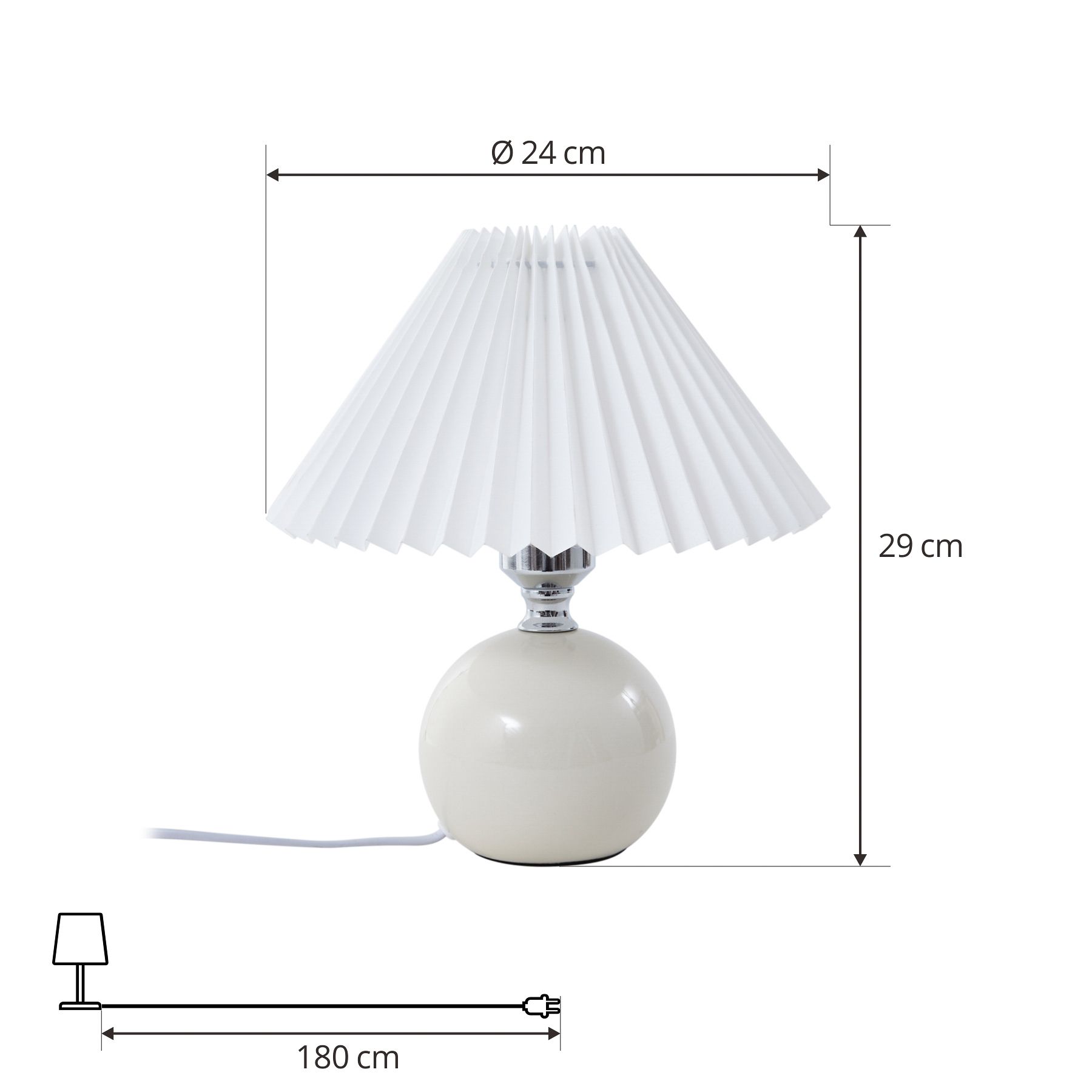 Kerimi bordslampa - elegans i keramik Upptäck den subtila elegansen hos Kerimi bordslampa, som inte bara skapar en visuell höjdpunkt med sin krämfärgade keramikbas, utan också påverkar atmosfären i ett rum. Det mjuka ljuset skapar en balans mellan avkopplande värme och stimulerande ljusstyrka, vilket är perfekt för mysiga kvällar såväl som koncentrerat arbete. Oavsett om det är på nattduksbordet, skrivbordet eller som accent på en sideboard - Kerimi bordslampa smälter harmoniskt in i olika inredningskoncept.