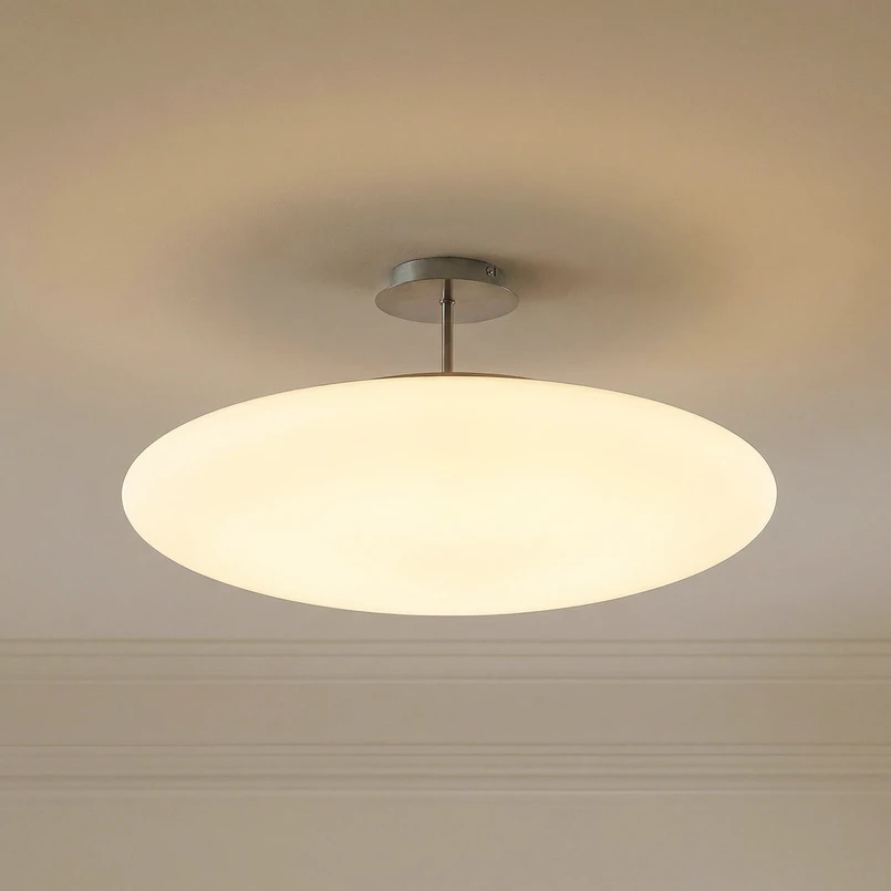 Vit, dimbar LED-taklampa i opalglas, Gunda, rund