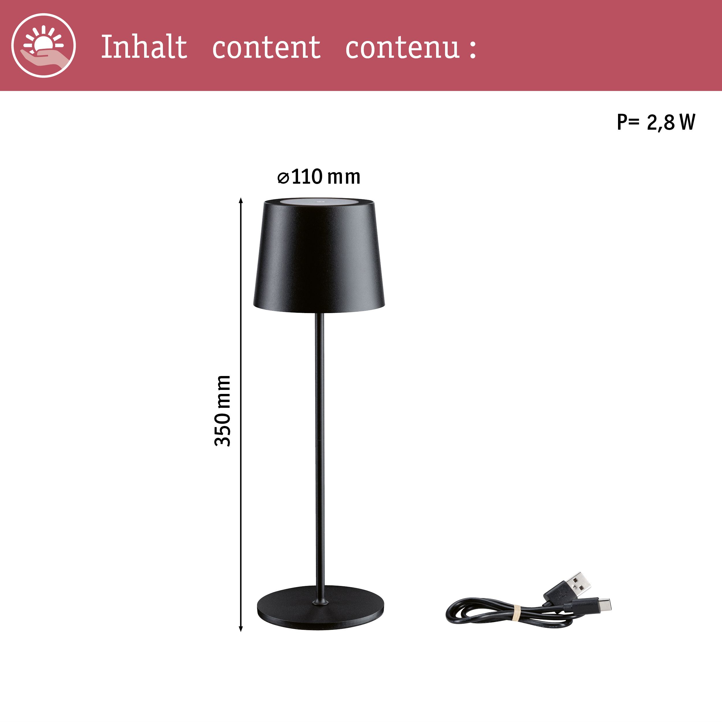 Paulmann LED-batteridriven bordslampa Gilo, svart, plast, IP44
