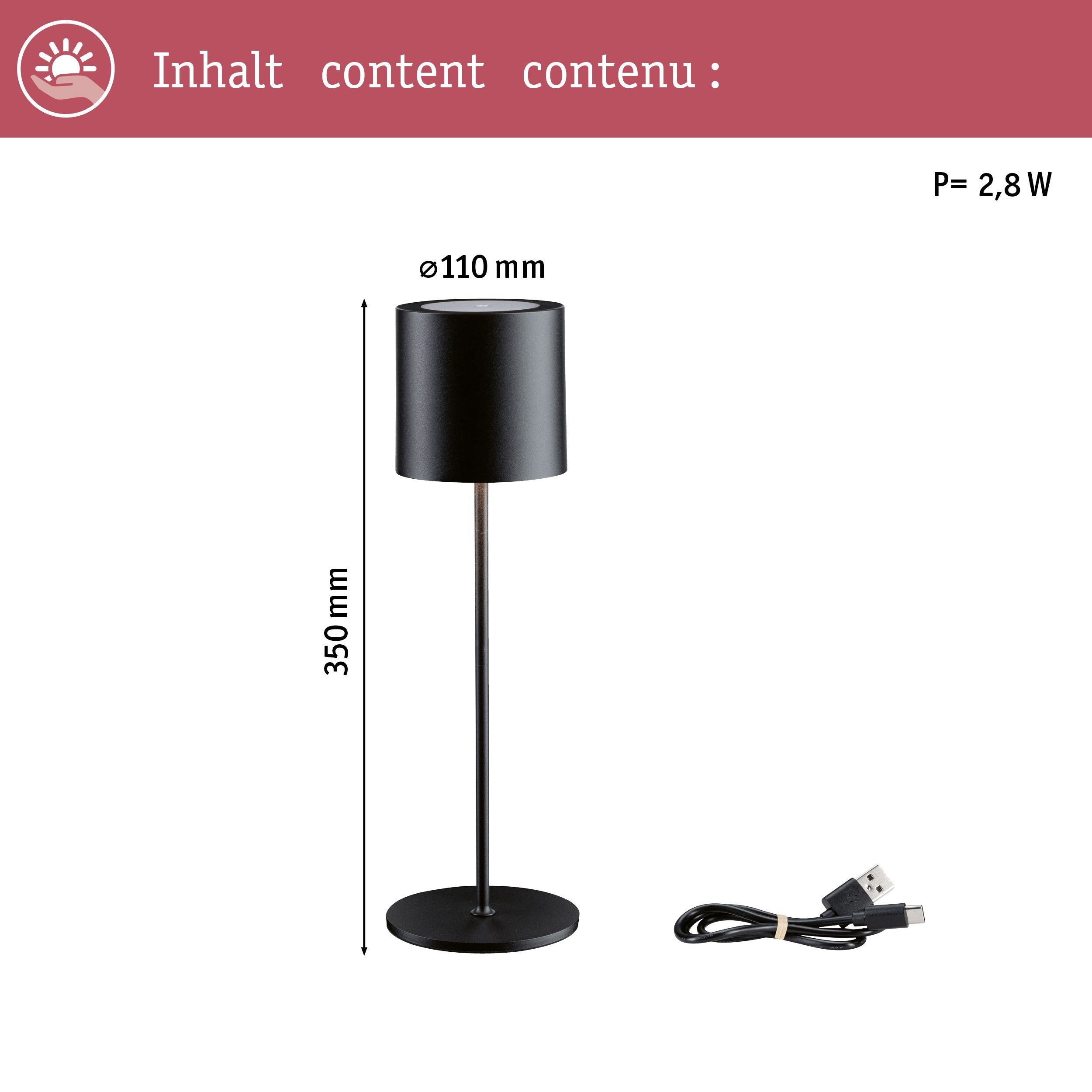 Paulmann LED-batteridriven bordslampa Tuni, svart, plast, IP44