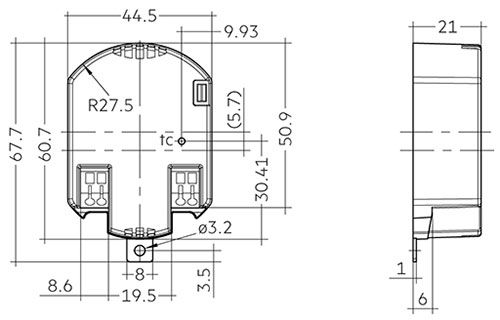 Halvcirkelformat konstantströms LED-drivdon LC flexC R ADV2 F IP20 från TRIDONIC för montering i armaturer, utgångsström inställbar i två steg Detta drivdon med ett halvcirkelformat hölje av vit polykarbonat är avsett för montering i armaturer. Dess utgångsström kan justeras i två steg; 500 mA, max. 20 W / 600 mA, max. 24 W. Armaturer som kan förses med LED-drivdonet finns framför allt inom handel och restaurang - som spotlights, strömskenor och ytmonterade armaturer. - För armaturer i skyddsklass I och II - För installation i torra miljöer - Med pluggplintar för anslutning - Omgivningstemperatur under drift: - 20 °C till + 60 °C - Överensstämmer med standarder: EN 55015 EN 61000-3-2, EN 61000-3-3, EN 61347-1, EN 61347-2-13, EN 61547, EN 62384 - skydd mot överbelastning, öppen krets, kortslutning, övertemperatur, sprängspänning 1 kV, överspänning 1 kV mellan L och N samt överspänning 2 kV mellan L/N och jord
