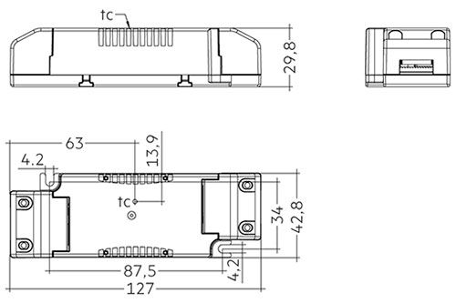Konstantström LED-drivdon LC fixC SR ADV2 IP20 från TRIDONIC för armaturer med M / MM Detta fristående LED-drivdon med dragavlastat hölje av vit polykarbonat är tack vare sina kompakta mått även lämpligt för små takutskärningar och låga hålrum. Det är särskilt lämpligt för spotlights och downlights i butiker och restauranger samt för panel- och områdesbelysning på kontor.